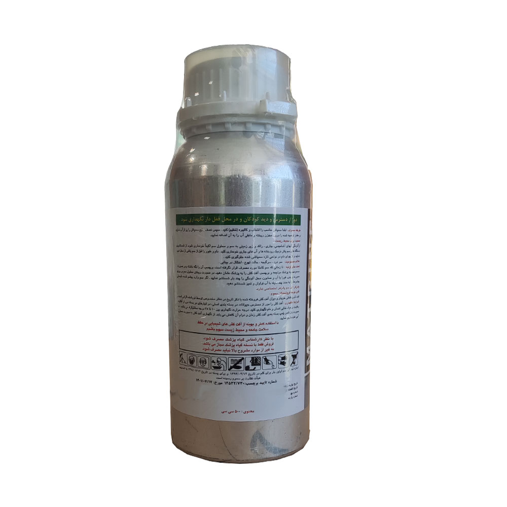 توصیه میشود به میزان دو لیتر در هزار لیتر آب (40 سی سی در بیست لیتر) از این سم مصرف شود و در هنگام غروب سمپاشی نشود.